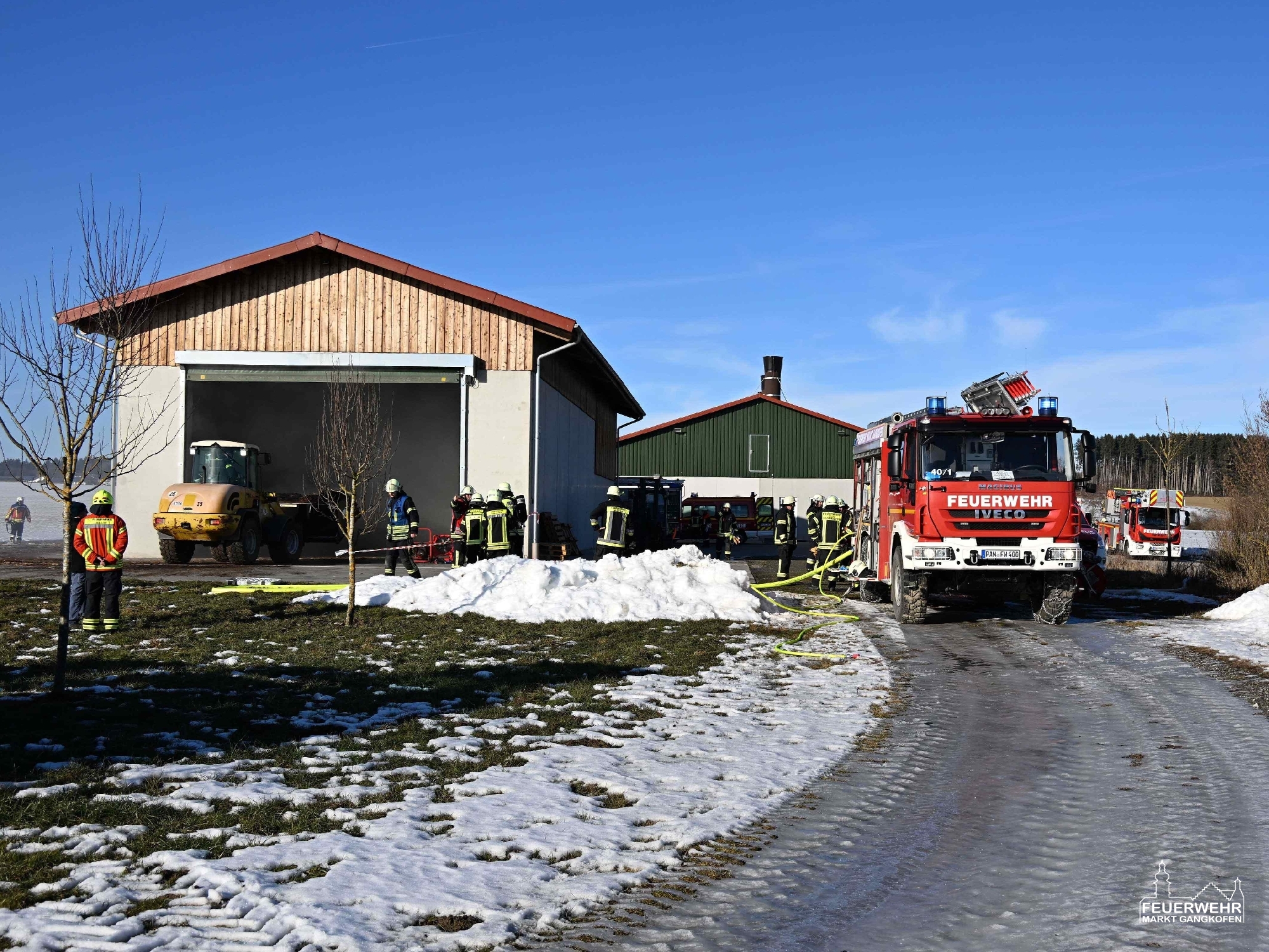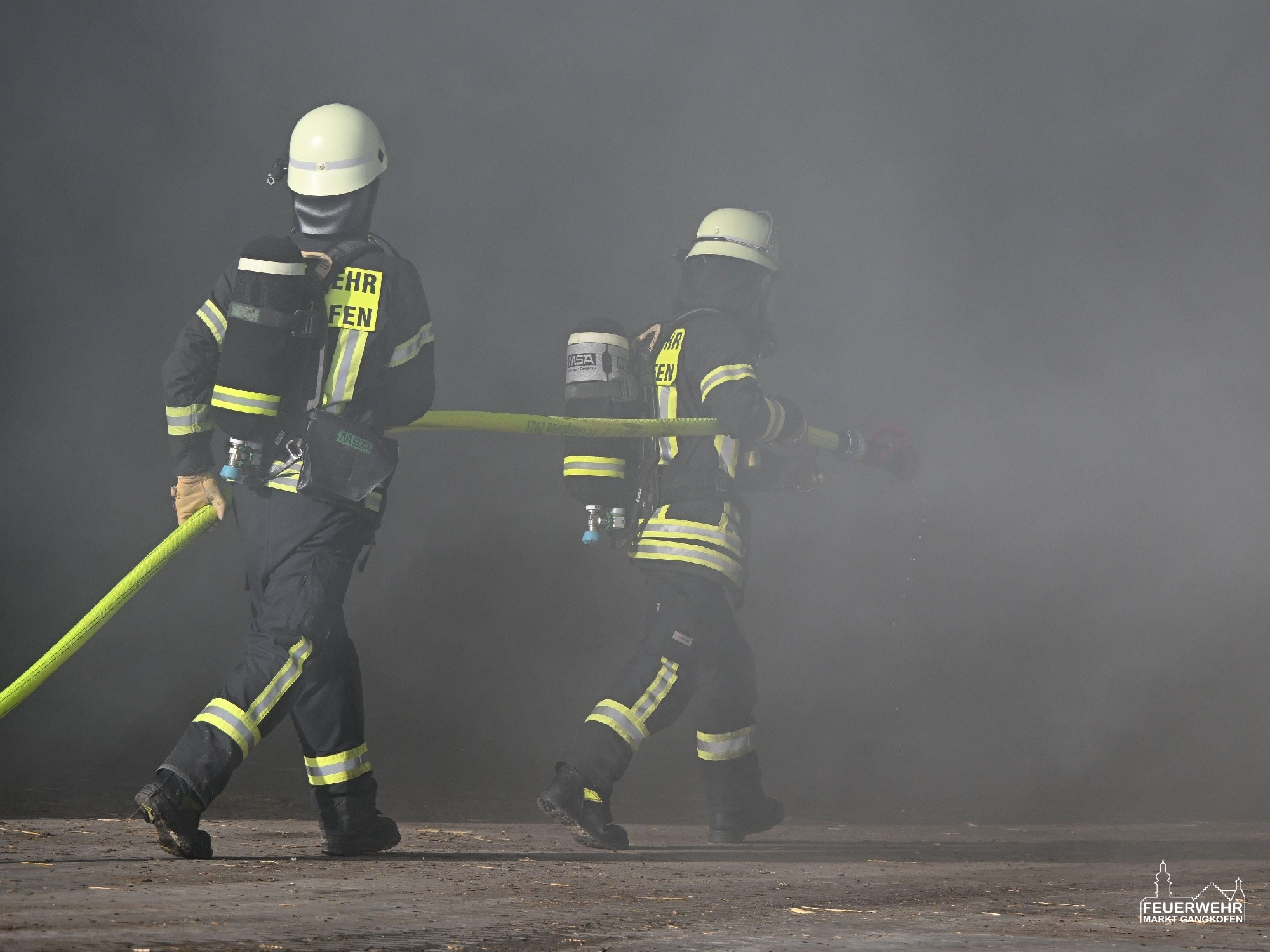 Beim Eintreffen stellten wir eine starke Verrauchung in der betroffenen Lagerhalle fest. Dort hatte sich gelagerter Mist entzündet. Zunächst unterstützte ein Atemschutztrupp beim Entfernen von abgestellten Bigpacks, welche mit Düngemittel gefüllt waren, aus dem Gefahrenbereich. Anschließend wurde mithilfe einer Wärmebildkamera der genaue Brandherd lokalisiert.